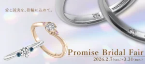 言葉にするのは少し照れくさい気持ちも、指輪に想いを込めることで、これから先、何度でも思い出せる誓いになります。バレンタインやホワイトデーを迎えるこの時期だからこそ、愛と誠実をカタチにするブライダルフェアを開催いたします。