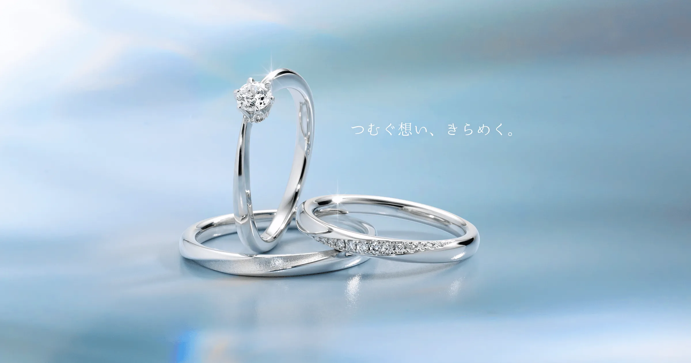 ゆるやかでさりげない、計算しつくされたV字の角度は、ダイヤモンドの美しさと共に、左手薬指を一番美しく魅せてくれます。