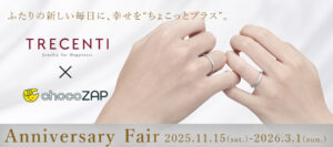 【 ご利用条件】 ①ブライダルジュエリーをご検討のカップル様(おひとりでの来店でもブライダルジュエリー成約で特典対象)②トレセンテに初めてご来店された方③ご案内に2時間ほどお時間を頂ける方