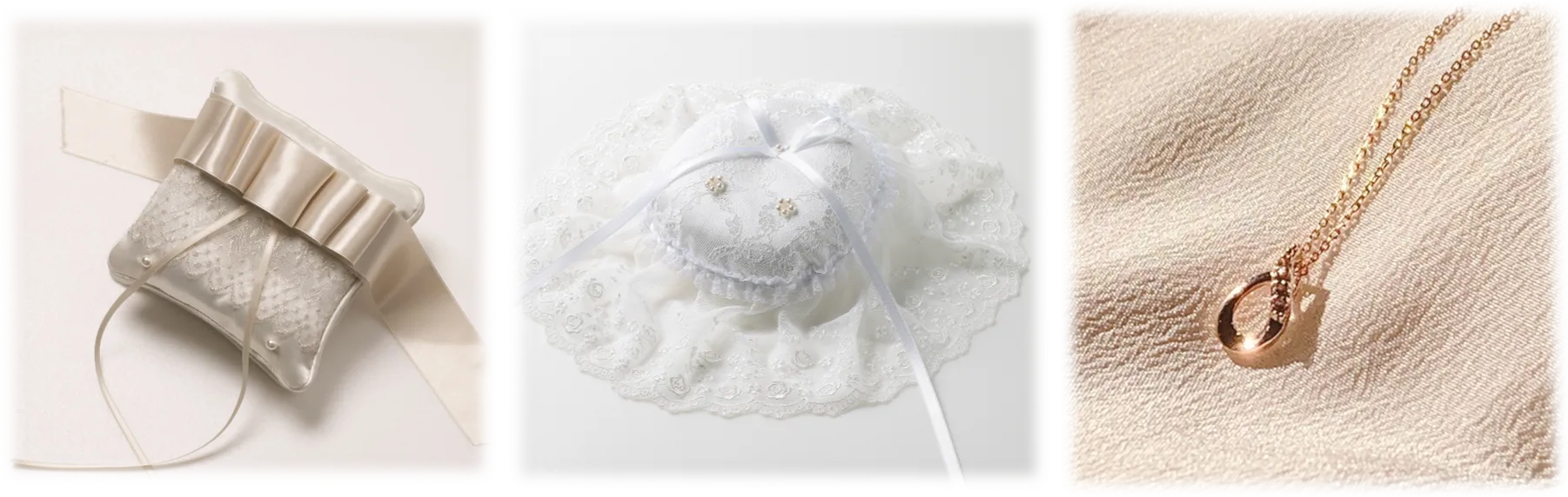 ②マリッジリングご成約で、挙式や写真撮影にも使える「リングピロー」をプレゼント。(二種類よりお好きなデザインをお選びいただけます。)