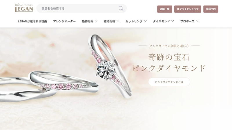LEGAN(レガン)札幌本店は、1946年創業の老舗ブライダルジュエリー専門店。希少な天然ピンクダイヤモンドを多く取り扱っていることで知られています。