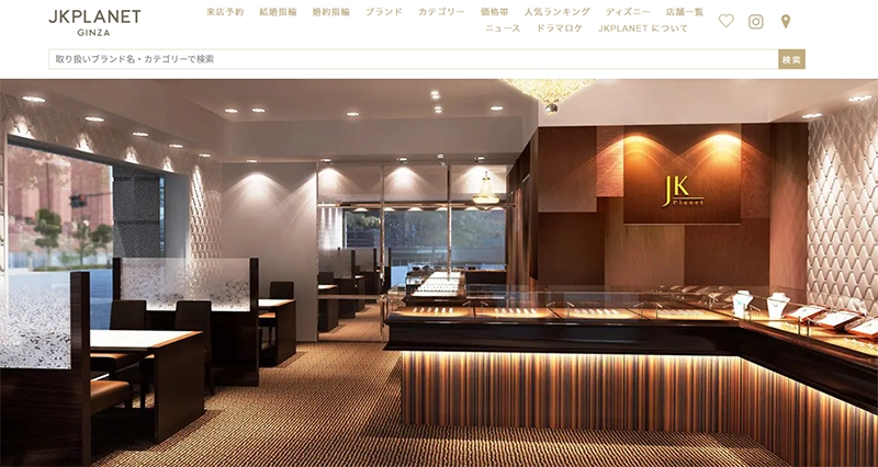 全国に店舗を構えるJKPLANET。ブランド名は、Jeweler(宝石商)の頭文字「J」と、創業者のイニシャル「K」に由来し、宝石商としての誇りと理念を象徴しています。