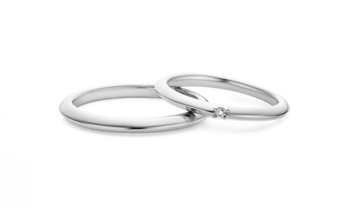ダイヤモンドを1石だけあしらった結婚指輪は「シンプルさは大切にしたいけれど、少しだけ華やかさも欲しい」という方に人気の高いデザインです。