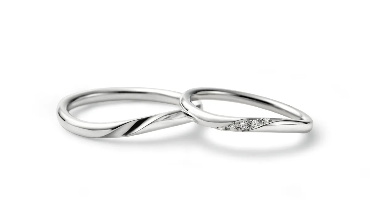 テーマは「新たな人生が始まる喜び」。ボリュームのあるウェーブデザインで、アクティブなシーンでも安心して使える結婚指輪です。