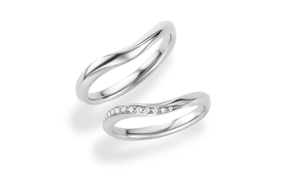 ウェーブデザインはリング全体が緩やかな曲線になっており、直線的なデザインに比べて柔らかくエレガントな雰囲気が魅力です。
